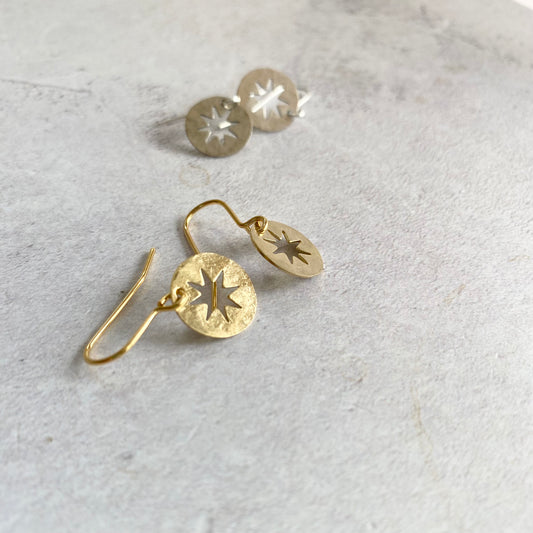 Hammered Brass Star Cut Out Earrings
