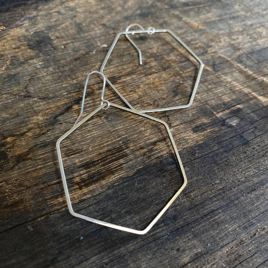 Big Silver Tone Hexagon Hoop Earrings