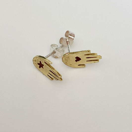 BESTOWAL Gold Brass Hand Studs with Heart and Star design - Sterling Silver Backs