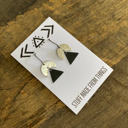 MOON RISE Silver Tone and Black Triangle Earrings