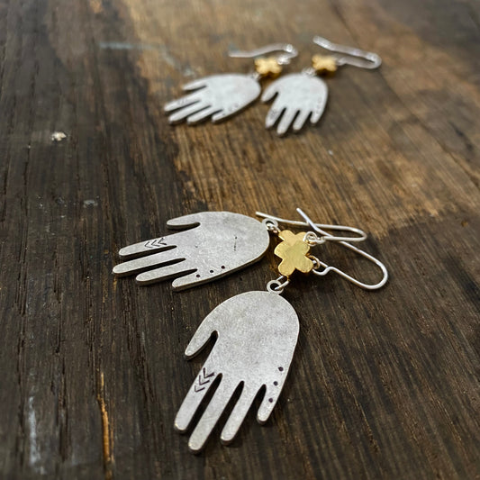 COMPASS Stainless Steel and Patinated Brass Earrings