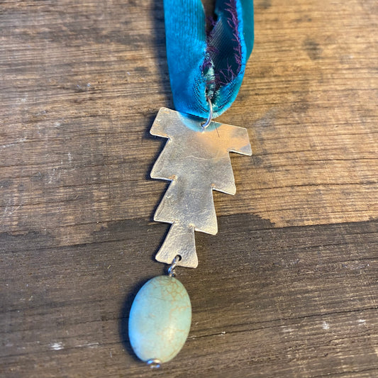 Sterling Silver Moroccan Bead Pendant on Velvet Necklace