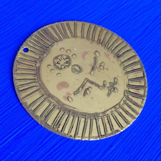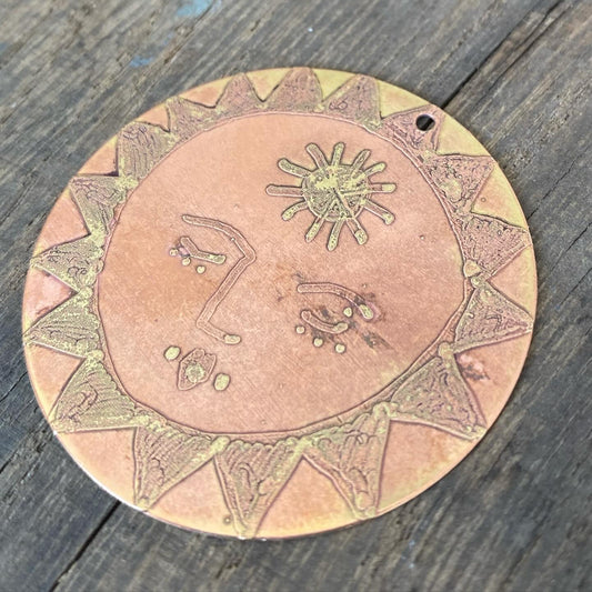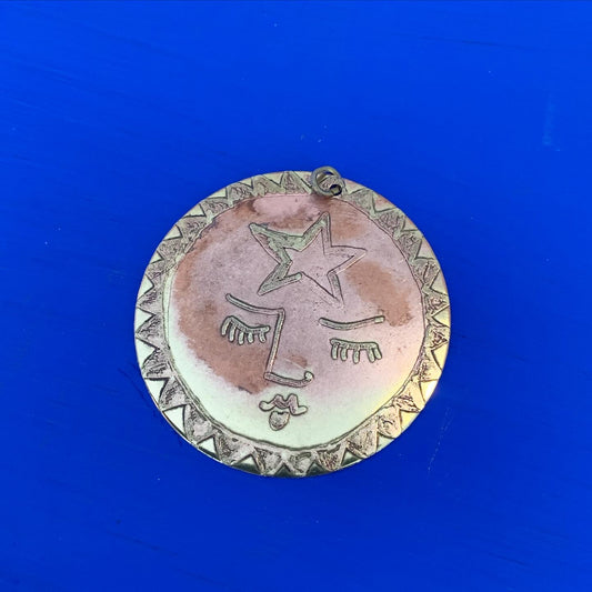 SISTER SUN 10 Brass pendant on blue cord
