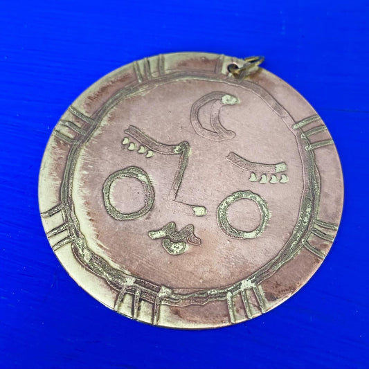 SISTER SUN 5 Brass pendant on blue cord