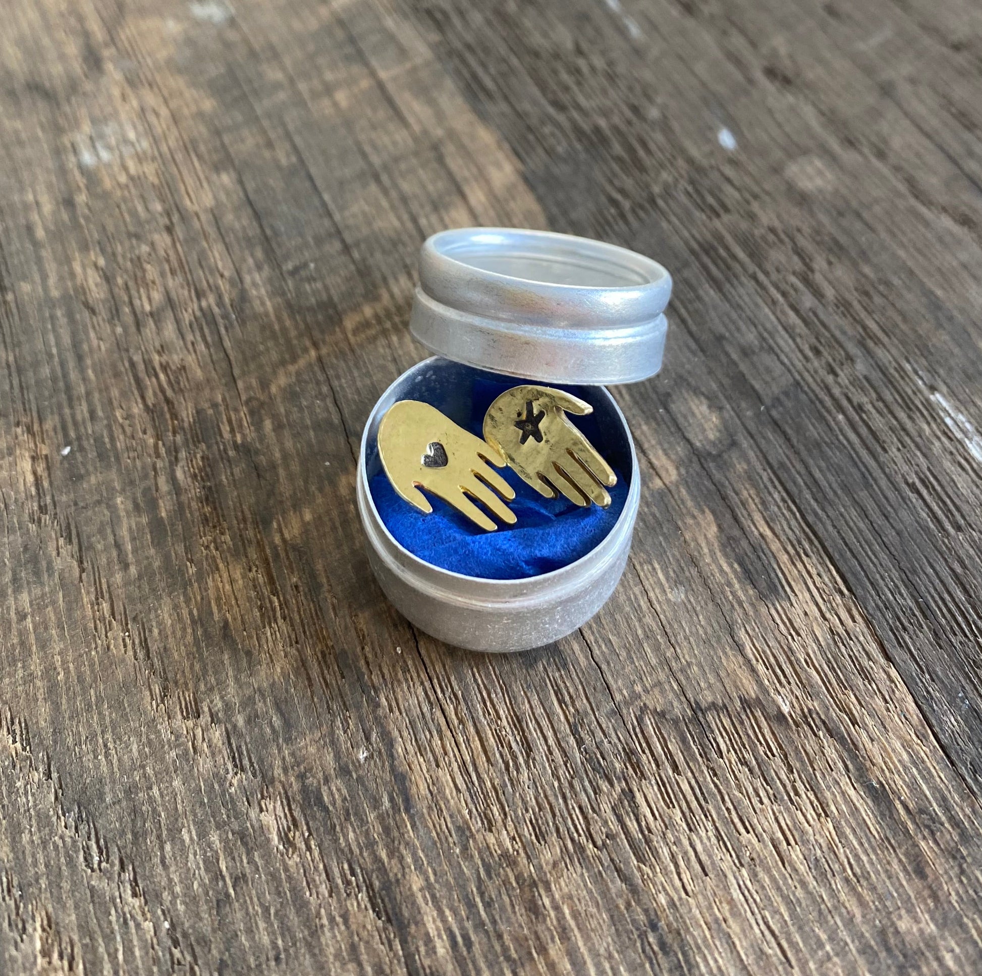 BESTOWAL Gold Brass Hand Studs with Heart and Star design - Sterling Silver Backs